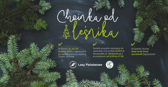 Zapraszamy po pachnącą żywicą i lasem choinkę! Sprzedaż świerków pospolitych odbędzie się w dniach 21, 22 i 23 grudnia 2020 r. w godz. 11:00 - 17:00 pod siedzibą Regionalnej Dyrekcji Lasów Państwowych w Szczecinku, ul. Mickiewicza 2.
